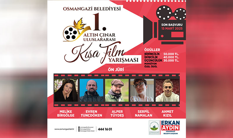 Osmangazi’yi birbirinden yeni kültür-sanat etkinlikleri ile buluşturmayı sürdüren Osmangazi Belediyesi, bir ilke daha imza atarak 1. Altın Çınar Uluslararası Kısa Film Yarışması düzenliyor. ‘Hikayesi uzun bir yolculuk’ temasıyla düzenlenen yarışma için başvurular başladı. Yarışmaya en fazla 20 dakika uzunluğunda kurmaca, belgesel ve animasyon türünde filmler başvurabilecek. Yarışma kapsamında bu yıl ‘En İyi Film Ödülü’nü kazanan yapıma 50 bin TL ödül verilecek. İkinciliği elde eden film 40 bin TL, üçüncü film ise 30 bin TL ile ödüllendirilecek. Ayrıca iki adet mansiyon ve bir jüri özel ödülüne layık görülen filmler de çeşitli ödüllerin sahibi olacak.
