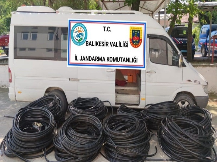 Balıkesir’in Bigadiç ilçesine bağlı kırsal İlyaslar ve Hisarköy mahalleleri arasında bulunan bir telekominikasyon firmasına ait bin 500 metre uzunluğundaki haberleşme ve nakil kabloları çalındı. İl Jandarma Komutanlığı asayiş timleri ile JASAT timlerinden oluşan özel ekip, şüphelilerin kullandığı aracın beyaz renkli, panelvan tipi araç olduğunu belirledi.