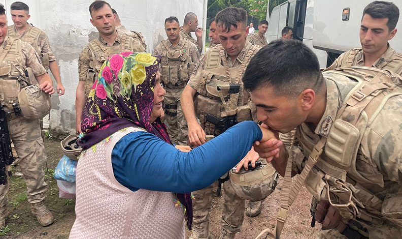 Suriye’ye gidecek Ordu İl Jandarma Komutanlığına bağlı Perşembe Jandarma Komando Taburu için Fatsa ilçesinde uğurlama töreni düzenlendi. Aileler, komandoları uğurlarken duygusal anlar yaşandı.
