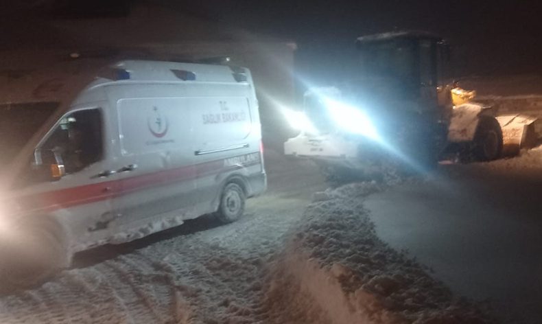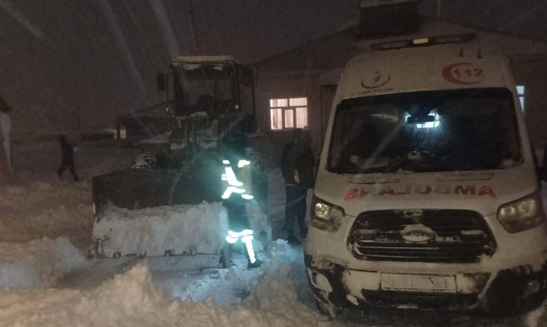 Çaldıran’da etkili olan kar yağışı ve tipi hayatı olumsuz etkiliyor. İlçenin Yukarı Kuyucak Mahallesi’nde kusma şikayeti bulunan 1,5 yaşındaki Yusuf Emre Kaya için yakınları 112 Çağrı Merkezinden destek istedi. Mahalle yolunun kapalı olması nedeniyle Van Büyükşehir Belediyesi ekipleri devreye girdi. İlçe merkezine 4 kilometre uzaklıkta bulunan mahalle için gece saatlerinde yola çıkan belediye ve sağlık ekipleri, 1,5 saatlik çalışmanın sonucunda Yusuf bebeği Çaldıran Devlet Hastanesine ulaştırdı.