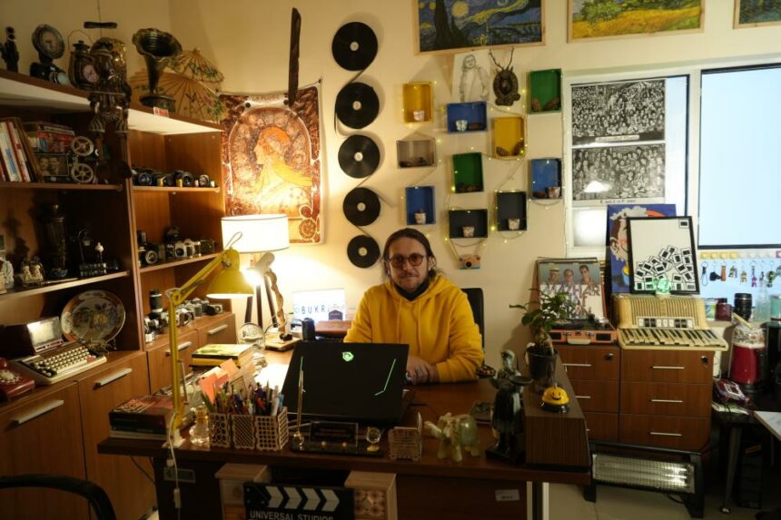 Odadan içeri girdiğim anda huzur buluyorum. Burası benim mağaram aslında, inzivaya çekildiğim yer. Bu odada daha çok sinemaya dair ağırlıklı eşyalar var. Eski fotoğraf makineleri, sinema kameraları, televizyonlar yönetmen monitörleri, vazolar, çini tabaklar, tavanda geyikli halılar gibi birçok şey var. Bu odada yok yok. İnsanlar bu odayı görünce ilk önce ne tuhaf bir adamsın diyorlar. Buraya bir öğrenci benimle konuşmaya geldiği zaman ben onu 10 dakika beklemek zorunda kalıyorum çünkü o sürede burayı incelemekle meşgul oluyor. Meslektaşlarımız da şaşırıyorlar. Her yerinde bir şey var, tavanından bile bir şey asmışız. Kimileri sadelik sever ama ben beyaz duvar görme taraftarı değilim. Benimki karışıklığın içerisinde bir düzen” dedi.
