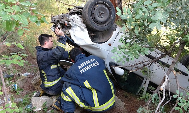 Kaza, Antalya-Konya D-695 Karayolu Taşkesiği mevkiinde meydana geldi. Manavgat’tan Akseki’ye seyir eden Burhan K. idaresindeki otomobil, sürücüsünün direksiyon hakimiyetini kaybetmesi sonucu yol kenarındaki beton bariyerleri yıkarak şarampole uçtu. Kazayı görenler durumu 112 Acil Çağrı Merkezi’ne bildirdi. Ağaçlara takılarak ters dönen otomobildeki 4 kişi, yoldan geçen vatandaşların yardımıyla çıkarıldı. İhbar üzerine kaza yerine sağlık, itfaiye, jandarma ve trafik ekipleri sevk edildi.