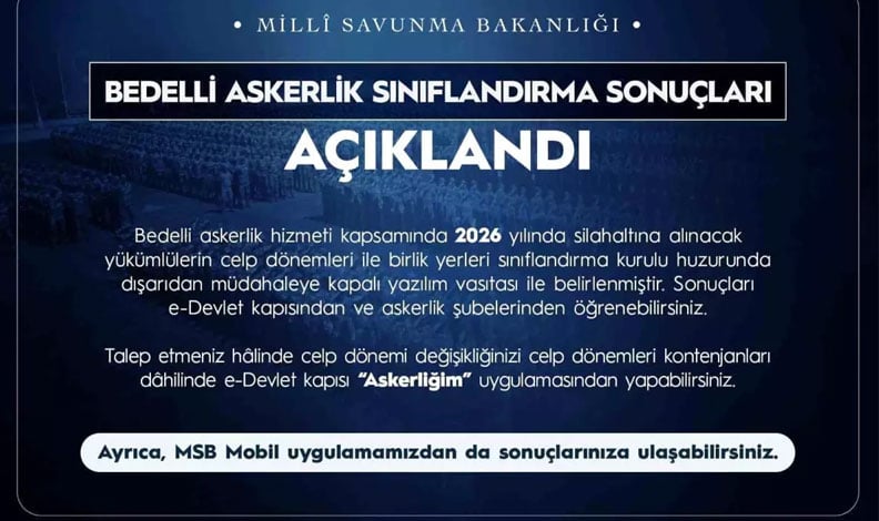 Bedelli askerlik kapsamında 2026 yılı sınıflandırma sonuçları açıklandı.