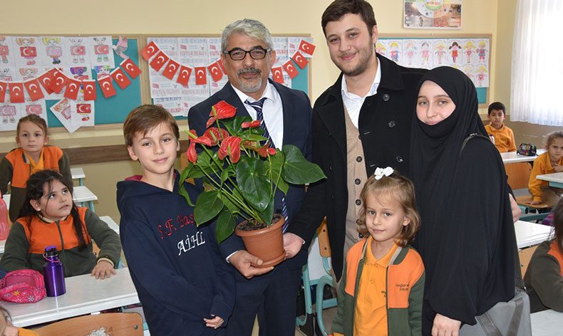 Hüseyin Gürz ise, “24 Kasım Öğretmenler Gününde öğretmenimize bir sürpriz yapmak istedik. Öncelikle Okul Müdürümüzle iletişime geçip, kendisinin desteğiyle öğretmenimize sürpriz yaptık. Aslında bu hikaye benimle başlıyor. İlk öğretmen olarak benle başladı. Akabinde diğer üç kardeşimi de okuttu. Bize milli manevi değerleri aktardı. Ve akabinde mezuniyet sonrasında bizi bırakmayarak, her türlü anlamda teşvik ederek, destekleyerek, fikirlerimize ön ayak olarak bize öğretmenliğin aslında sadece bir harf öğretmek bir kelime aktarmak olmadığını, bizim ailemizden biri olarak gösterdi diyebiliriz. Peygamberi bir meslek yapıyorlar öğretmenler. Hz. Ali’nin de dediği gibi ‘Bana bir harf öğretenin 40 yıl kölesi olurum.’ Bizim ailemizden 4 kişiyi Erdoğan öğretmenimiz okuttu. Artık bizim ailemizden bir birey diyebiliriz. Buradan da tüm öğretmenlerin öğretmenler gününü kutluyorum” dedi.