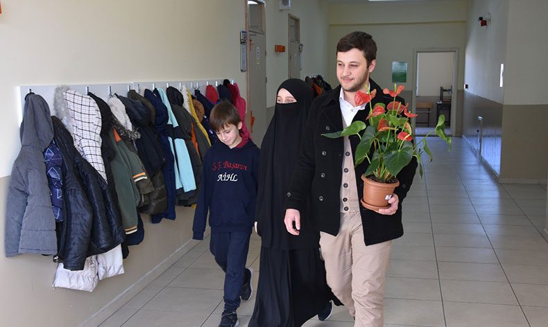 Gürz kardeşler sınıfta öğretmenlerine çiçek takdim ederek, elini öptüler. Mezun ettiği öğrencileri bir an da karşısında gören öğretmen Yalanız ise, duygu dolu anlar yaşadı.
