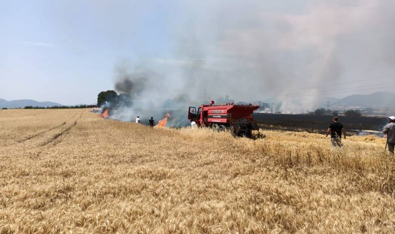 40 dönüm buğday tarlası kül oldu