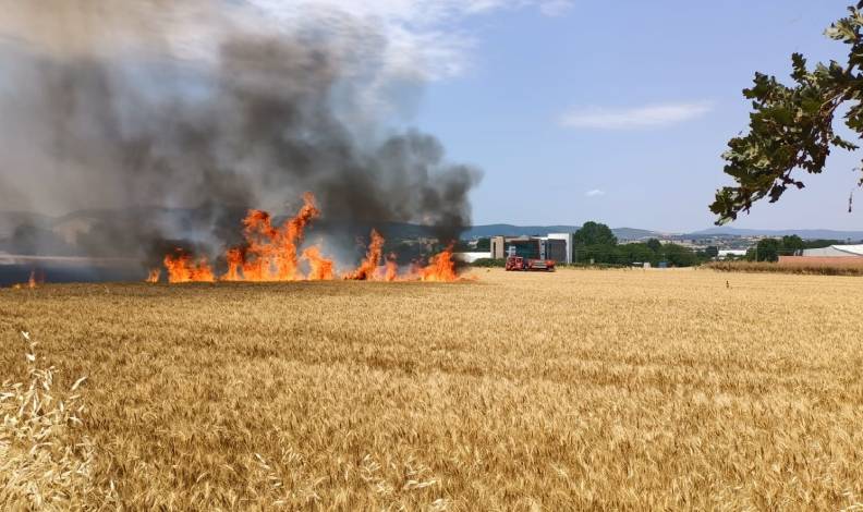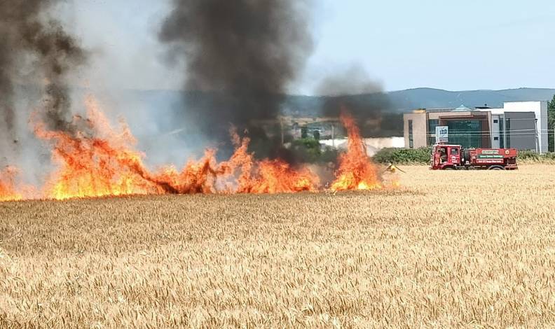 40 dönüm buğday tarlası kül oldu