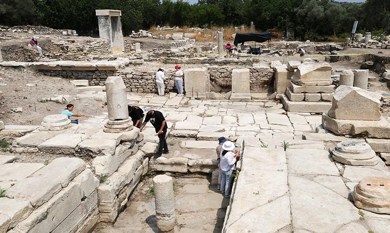 Muğla bölgesinde 38-40 derece dolayında seyreden hava sıcaklığı, UNESCO Dünya Miras Geçici Listesinde yer alan Stratonikeia antik kentinde mermer ve toprağın da sıcaklığı ile birlikte hava sıcaklığı 45 dereceye kadar ulaşırken, sahada çalışan akademik personel bayıltıcı sıcaklara rağmen iğne ile tarih kazmaya devam ediyor. Sahada çalışan ekiplerden bazıları iğne ile toprak kazırken, bazıları da gün yüzüne çıkarılan mermer sütunları fırça ile temizliyor.