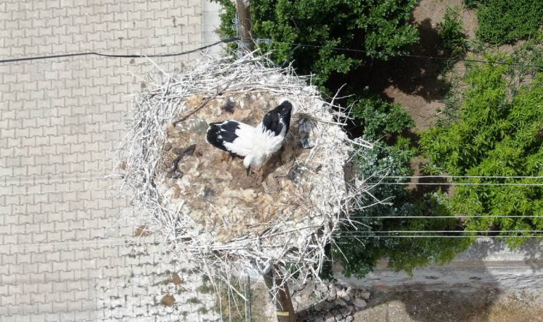 Van’ın Özalp ilçesine bağlı Yukarı Dönerdere Mahallesi’ni mesken tutan leylekler, yaklaşık 46 yıldır aynı direkte konaklıyor. Mahalle sakinlerinden İsmail Genel’in bahçe duvarının yanındaki elektrik direğindeki yuvada kuluçkaya yatan leylekler, 4 yavru dünyaya getirdi. Bu yıl dünyaya getirdikleri 4 yavrudan ikisi yuvadan düşerek telef oldu. Yaz boyunca akarsularda ve mahallenin hemen yanı başında bulunan göletten avladıkları balık, kurbağa ve yılanlarla yavrularını besleyen leylekler, vatandaşlar tarafından da yemleniyor.