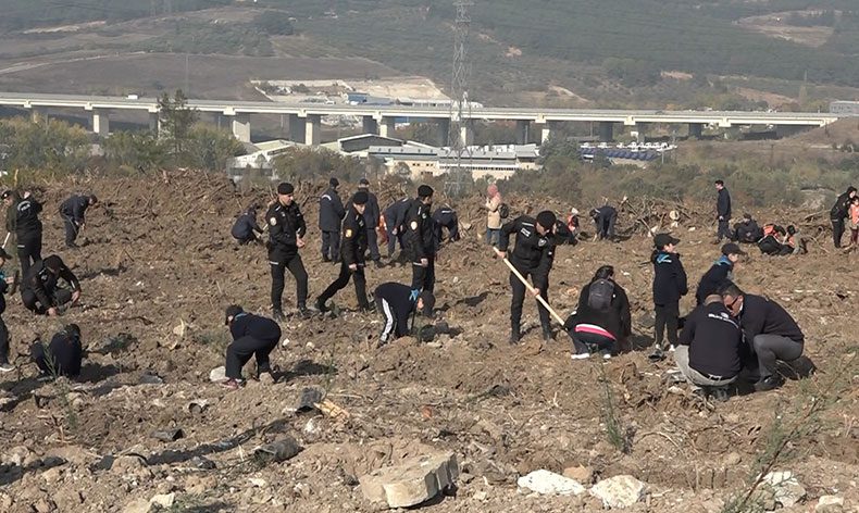 Bursa’nın 18 ayrı noktasında gerçekleştirilen fidan ekimine, jandarmasından öğrencisine, polisinden STK’larına kadar bir çok kişi katılım gösterdi. Geleceğe Nefes Seferberliği çerçevesinde Bursa’da gün içinde 48 hektar alanda 50 bin 550 fidan toprakla buluşturulacak. Osmangazi ilçesi Ovaakça Mahallesinde 2 hektar alana 3 bin kızılçam fidanı Bursa protokolünün katılımıyla gerçekleştirilen törende konuşan Bursa Valisi Yakup Canbolat, “Bursa geçmişinden aldığı emaneti hakkıyla korumaya çalışan bir şehrimizdir. 1 milyon 79 bin 544 hektarlık yüz ölçümüne sahip Bursa’nın orman varlığı 485 bin 436 hektardır. Yüz ölçümünün yüzde 45’i ormandır. Bugün, Bursa’nın 18 farklı alnında bugün 50 bin 550 fidan dikimi gerçekleştirilecek. Yıl sonuna kadar ise, 2,5 milyon fidan toprakla buluşmuş olacak” diye konuştu.