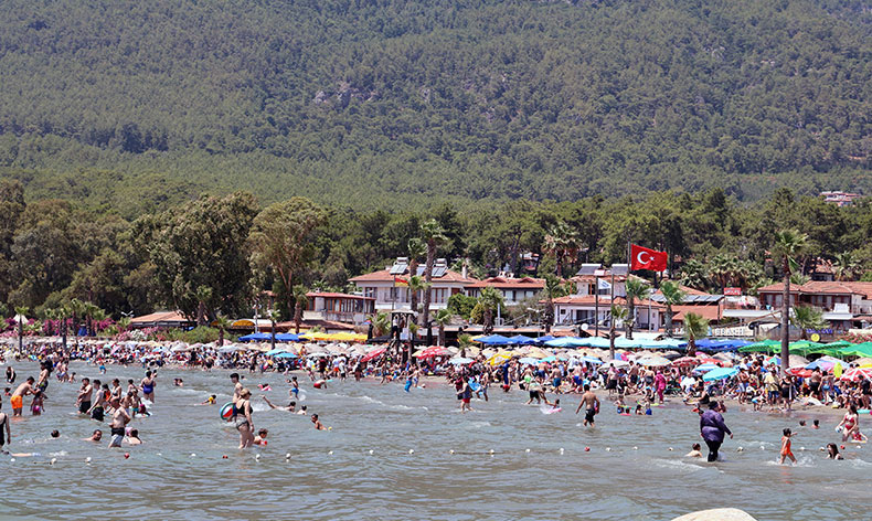 Akyaka Mahallesine karayolu girişinde başlayan araç kuyruğu yaklaşık 3 kilometre uzunluğa ulaşırken, birçok sürücü kuyruğu görünce geri dönmek zorunda kalıyor. Akyaka’nın yaklaşık 250 metrelik sahilinde şezlong ve şemsiye koyacak alan kalmadı. Deniz yüzeyi adeta insanlarla kaplanırken, bu yoğunluğun hafta sonuna kadar devam ekmesi bekleniyor.