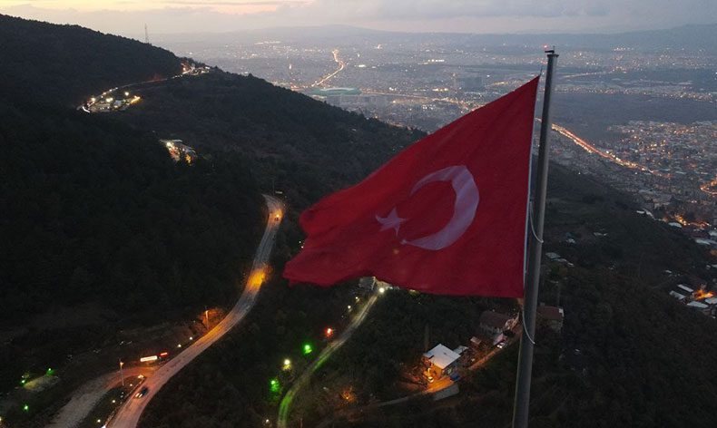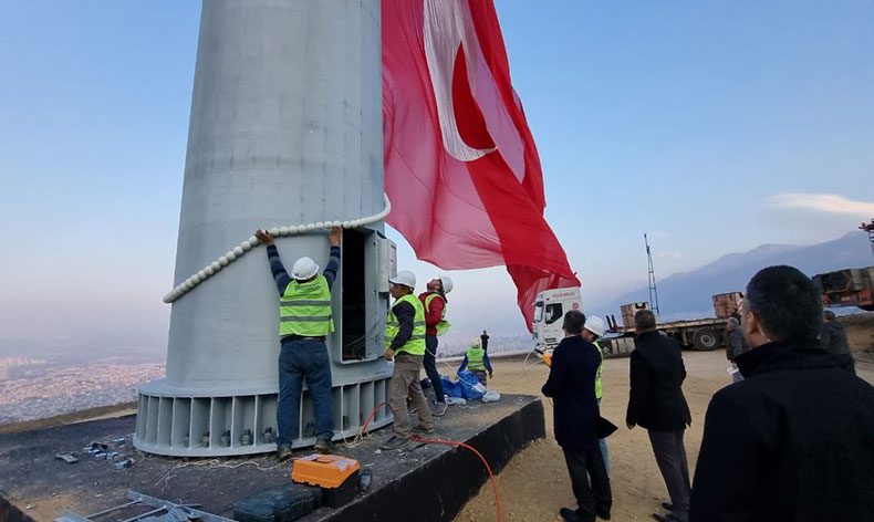 Bursa Büyükşehir Belediyesi, kültür başkentliği çerçevesinde gerçekleştirdiği projelerine bir yenisini daha ekledi. Uludağ yolunda 100 metrelik direğe çekilen 600 metrekarelik dev Türk Bayrağı, Bursa’nın her noktasından görülebilecek. Bayrak Tepe’de alanında Türk Bayrağını göklere çekilmesine katılan Bursa Büyükşehir Belediye Başkanı Alinur Aktaş, “Bu bayrak, Uludağ yolundaki BUSKİ’nin su deposunun bulunduğu alanda bulunuyor.