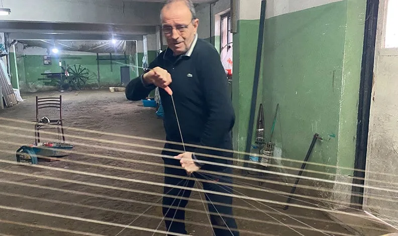 Osmangazi ilçesi Muradiye Mahallesi’nde, Osmanlı’dan günümüze uzanan devdâhlık sanatı, 60 yaşındaki usta Ertuğrul Şengünalp’in adımlarıyla yaşamaya devam ediyor. Çocuk yaşta başladığı bu meşakkatli el sanatını 53 yıldır aralıksız sürdüren Şengünalp, her gün kilometrelerce koşarak ipek iplik üretiyor.