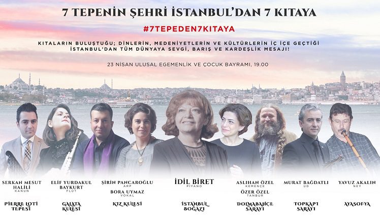 Dünyaca ünlü piyanist İdil Biret’in de arasında bulunduğu sanatçılar Ayasofya, Topkapı, Galata Kulesi, Dolmabahçe, Kızkulesi, Pierre Loti ve 15 Temmuz Şehitler Köprüsü‘nden tüm dünyaya konser verecek.