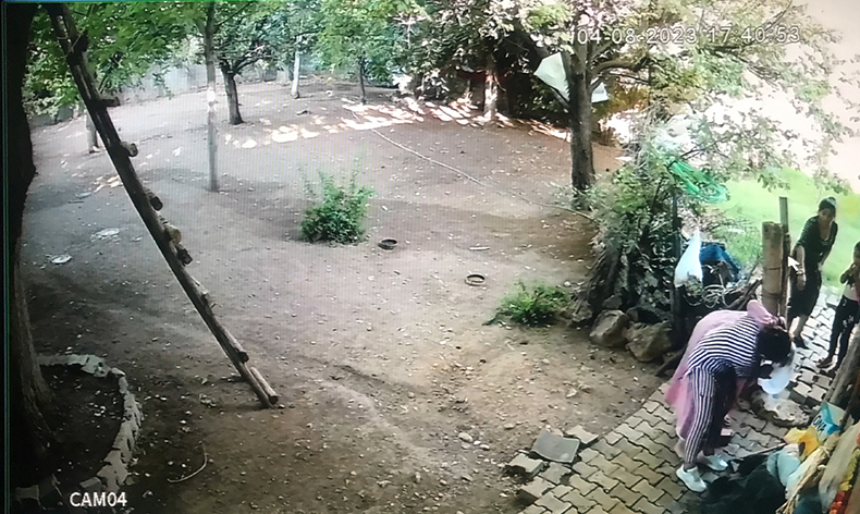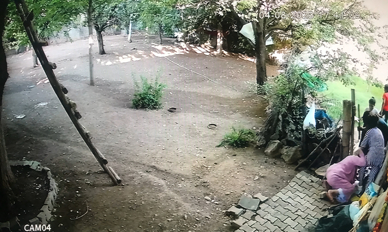 Bunun üzerine ayrılan çocuklar ailelerine haber vermesi üzerine ellerinde taş ve sopalarla bahçeye gelen kadın, erkek ve çocuklardan oluşan kalabalık bir gurup kadına saldırdı. Saldırı anı evin güvenlik kamerasınca kaydedildi.