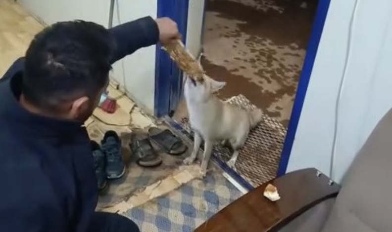 Elazığ’ın Kovancılar ilçesine bağlı Ekinözü köyünde bulunan güneş panellerinin olduğu bir işletmede çalışan vatandaş, her akşam evinin önüne gelen tilkiyi elleriyle besliyor. Evin bahçesine giden tilki, ev sahibinin verdiği yemekleri yedikten sonra tekrar doğal alanına dönüyor.