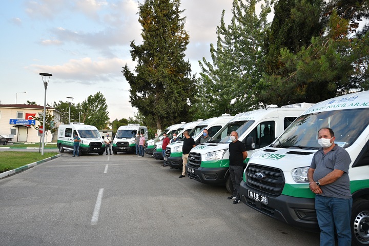 Vatandaşların en acılı günlerinde evrak peşinde koşturmadan bir telefonla tek merkezden hizmet almalarını sağlayan Bursa Büyükşehir Belediyesi, 15 cenaze nakil aracını yeniledi. Günde 45, yılda ise yaklaşık 16 bin cenaze yıkama ve defin işlemi gerçekleştiren Büyükşehir Belediyesi, THY ile yaptığı protokol kapsamında şehir dışı cenaze nakil hizmetleriyle de vatandaşların omuzlarından önemli bir yükü almaya devam ediyor.