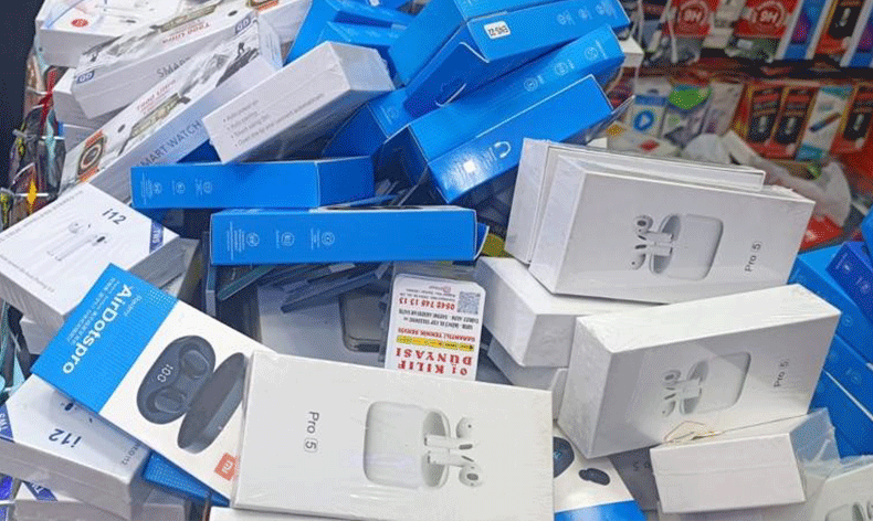 Operasyonda iki kişi yakalanırken adreste yapılan arama çalışmalarında 274 elektronik sigara, 85 cep telefonu, 270 kablosuz kulaklık, 10 akıllı kol saati ele geçirildi.
