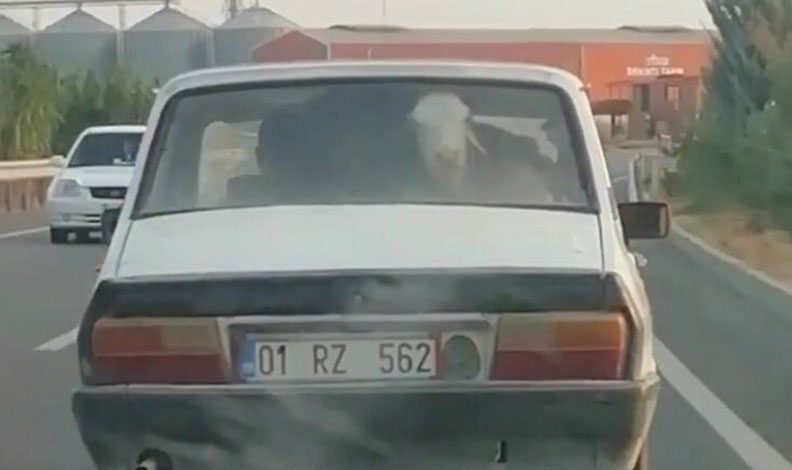 Merkez Yüreğir ilçesinde Kozan Yolunda bir otomobilin arka koltuğunda buzağı taşındı. İmamoğlu ilçesi yönüne giden otomobilin arka koltuğundaki buzağıyı fark edenler cep telefonlarını çıkarıp bu anları görüntüledi. Sürücü, diğer araçlarda seyahat eden kişilerin şaşkın bakışları arasında yoluna devam etti.