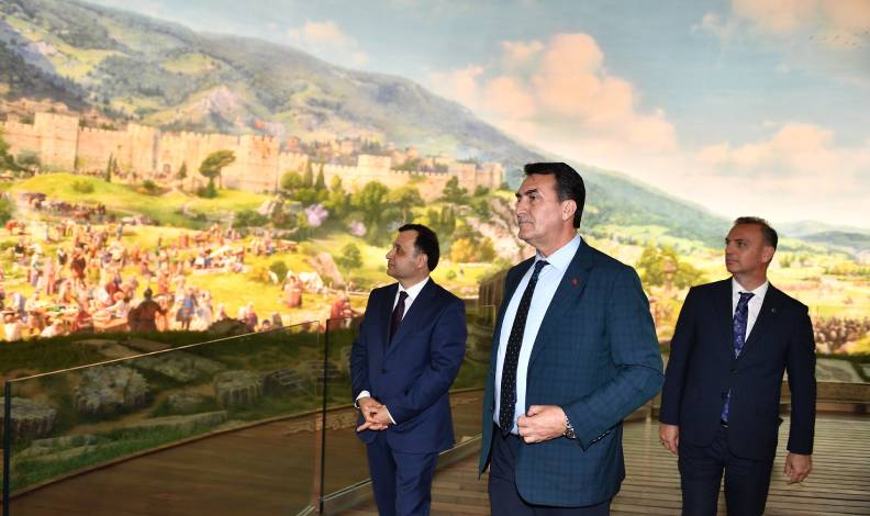 Anayasa Mahkemesi Başkanı Zühtü Arslan, Anayasa Mahkemesi Başkanvekilleri ve Üyeleri, Bursa’nın fetih gününün tasvir edildiği 3 boyutlu panoramik resmin olduğu kubbe bölümüne çıktığında ise şaşkınlıklarını gizleyemedi. Bursa’nın 23 yıl süren kuşatma sonunda kan dökülmeden el değiştirdiği fetih gününü tasvir eden panoramik resmi dikkatlice inceleyen Anayasa Mahkemesi heyeti, adeta 696 yıllık bir zaman yolculuğu yaptı.