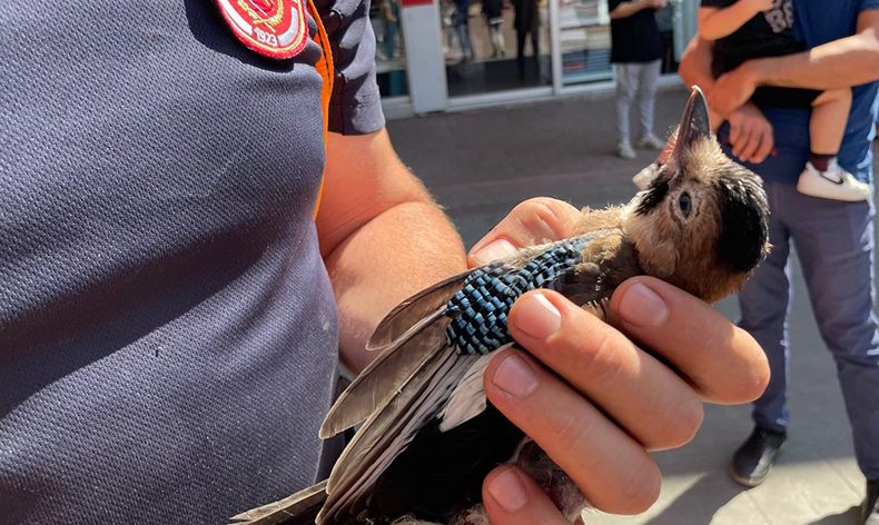 Çarşı merkezindeki vatandaşlar; kuşun uçamadığını olduğu yerde kanat çırptığını fark ettiler. Kuşun ayaklarına ip dolandığını gören vatandaşlar durumu belediye ekiplerine bildirdi.