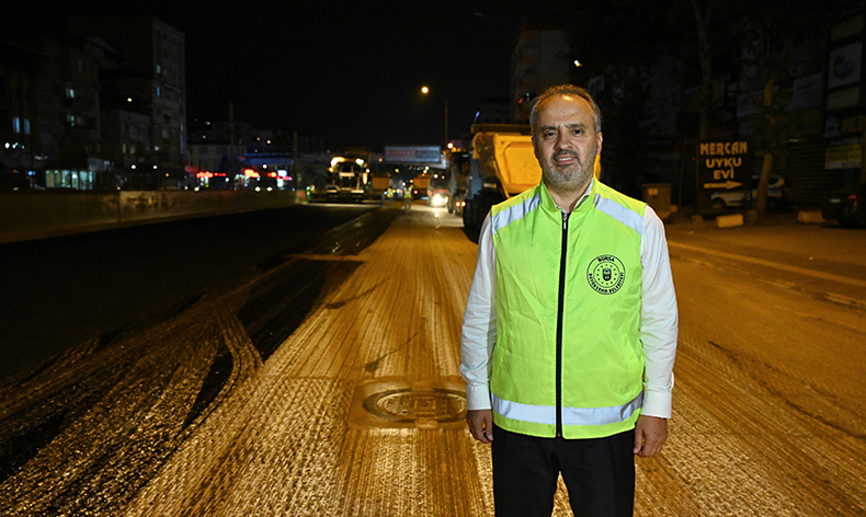 Bursa’da ulaşım sorununa köklü çözümler üretmek amacıyla raylı sistemler, yeni yollar, akıllı kavşaklar ve toplu ulaşım gibi pek çok yatırımı hayata geçiren Büyükşehir Belediyesi, 17 ilçede de mevcut yolları daha sağlıklı hale getirmek için asfalt yenileme çalışmalarına hız verdi. İlçe ve kent merkezlerindeki ana arterlerde trafiğin kesintiye uğramaması için çalışmalar gece boyu sürdürülüyor. Bu çerçevede doğu-batı aksında Bursa trafiğinin can damarı olan Bursa-Ankara karayolunun asfaltı da gece boyu devam eden çalışmalarla etap etap yenileniyor. Daha önce Yüksek İhtisas Kavşağı ile Mimar Sinan Kavşağı arasını çift yönlü olarak ve Otosansit ile Gürsu Kavşakları arasını gidiş istikametinde yenileyen ekipler, bu hafta sonu devam eden çalışmalarla Otosansit ile Gürsu Kavşakları arasının geliş istikametini de tamamladı.