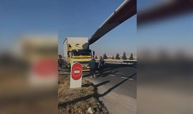 Olay, Ankara-Polatlı yolunda meydana geldi. Edinilen bilgilere göre, İzmir’den yüklenen ve Ankara istikametine seyir halinde olan 64 metre uzunluğunda, 15 ton ağırlığındaki pervane yüklü tır, şoförü dinlenmek üzere bir tesise girdiği esnada arkasından gelen kamyon ile çarpıştı. Rüzgar türbini kamyona çarparken şans eseri araç sürücüsü kazadan yara almadan kurtuldu.