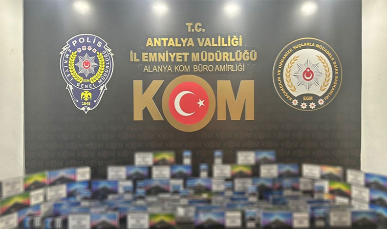 Antalya Cumhuriyet Başsavcılığı koordinesinde gerçekleşen operasyonlarda, 225 bin 800 boş/dolu makaron, 72 kilogram kıyılmış tütün, 41 bin 854 sigara sarma kağıdı, 720 paket gümrük kaçağı sigara, 311 adet elektronik sigara, 289 adet güneş gözlüğü, 99 adet TAPDK bandrolü, 10 adet gümrük kaçağı cep telefonu, 1 sigara sarma makinesi ve 1 kompresör ele geçirildi.