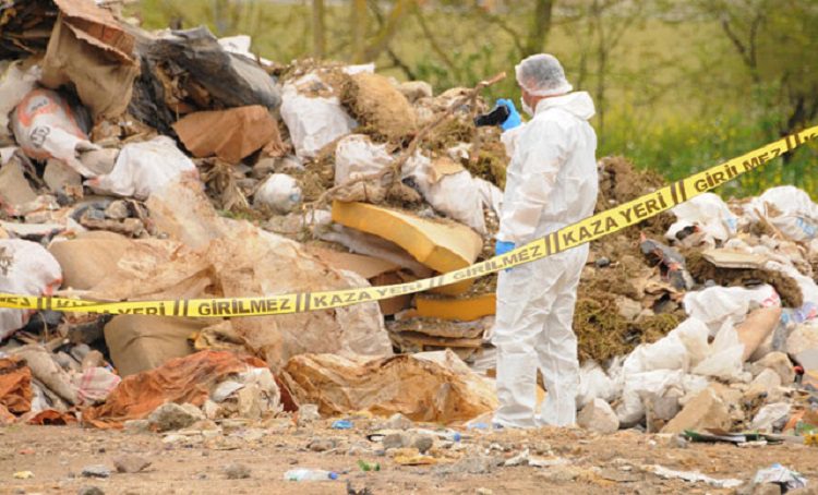 İzmit Karadenizliler Mahallesi’ndeki çöp döküm alanında, geçen salı günü geri dönüşüm malzemelerini ayrıştıran işçiler, çuval içinde battaniyeye sarılı halde, çürümüş ceset buldu.