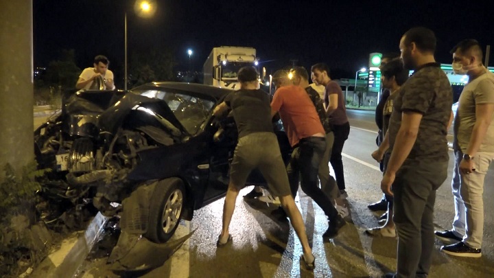 Kazada, demir yığınına dönen otomobilde sıkışan sürücü Bayram D. yaralandı. Bayram D.’nin yardımına çevredekiler koştu. Bayram D., yaklaşık 15 dakikalık çalışmayla sıkıştığı yerden kurtarıldı. Vatandaşlar, otomobilin kopan arka koltuğunu sedye gibi kullanarak bilinci kapalı halde bulunan Bayram D.’yi güvenli bir alana taşıdı.