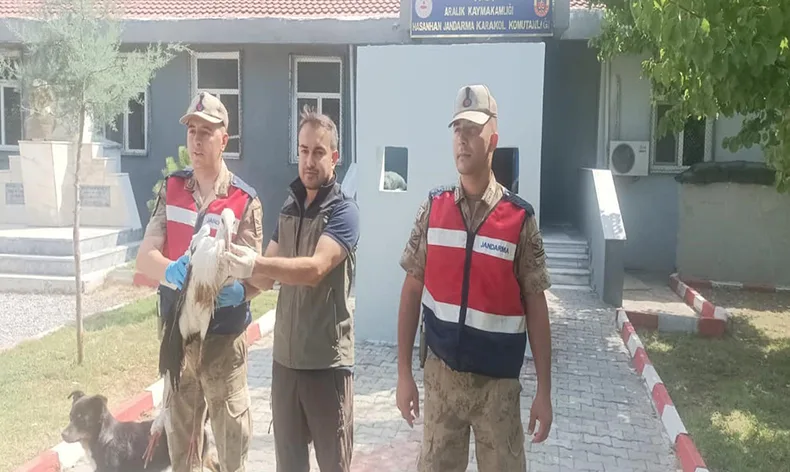 Iğdır’ın Aralık ilçesi, Hasanhan köyünde duyarlı vatandaşlar sıcaktan bitkin düştüğü tahmin edilen bir leylek buldu. Vatandaşlar leyleği Hasanhan Köyü Jandarma Karakol Komutanlığına teslim etti. Ekipler leyleği teslim adlıktan sonra Iğdır Doğa Koruma ve Milli Parklar Şube Müdürlüğü ekiplerine haber verdi. Köye giden ekipler leyleği teslim alarak bakım ve beslenmesini yaptı. Leylek iyileştikten sonra tekrar doğal ortamına bırakılacak.