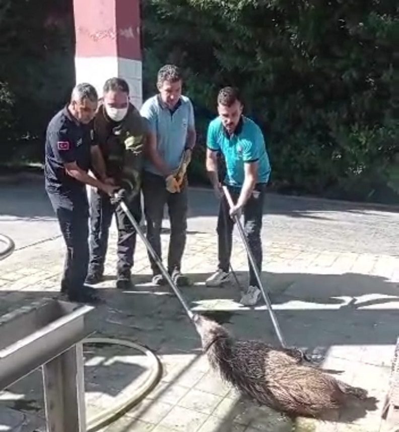 Arıtma tesisine düşen domuz kurtarıldı