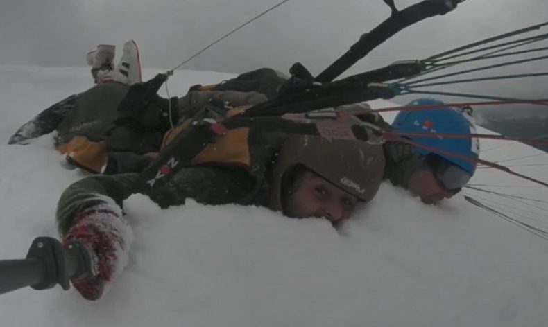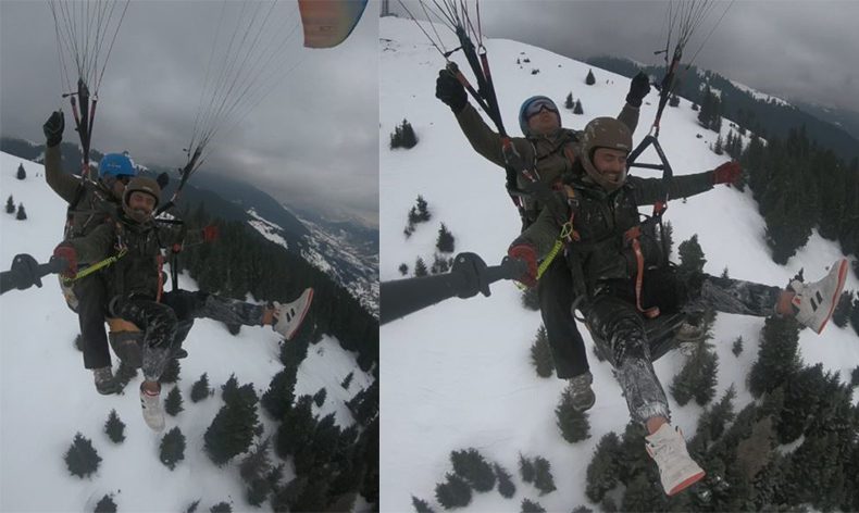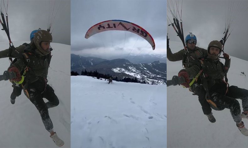 Artvin’de kar üzerinde yamaç paraşütü