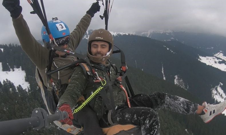 Artvin’de kar üzerinde yamaç paraşütü