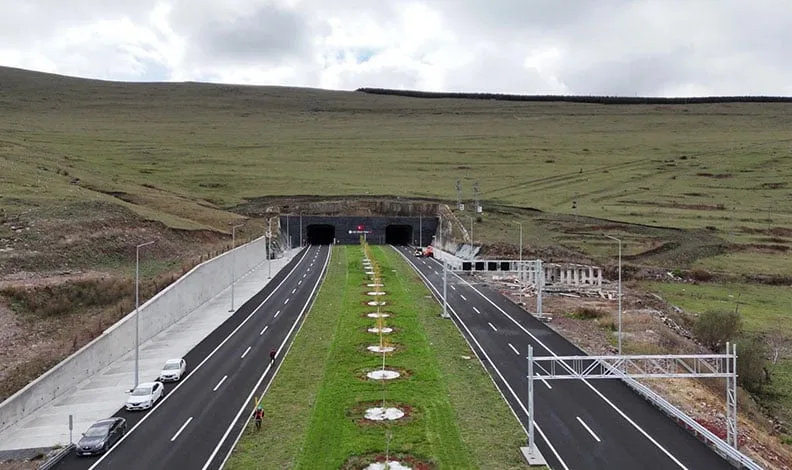 Bakan Uraloğlu, “Türkiye ile Gürcistan arasındaki Aktaş Sınır Kapısına erişim sağlayan Çıldır-Aktaş Bağlantı Yolu’nu 16,3 kilometre uzunlukta inşa ettik. Güzergâh üzerinde yer alan 2 bin 159 rakımlı Mozeret Geçidi, çift tüp olarak inşa ettiğimiz 2 bin 308 metre uzunluktaki Aşık Şenlik Tüneli ile geçilecek. Mevcut güzergâh 4 kilometre kısalacak, seyahat süresi ise 35 dakikadan 10 dakikaya düşecek.” dedi.