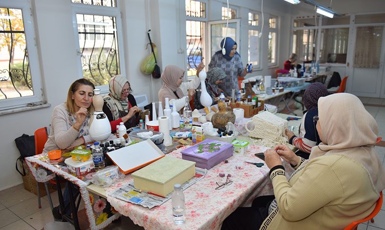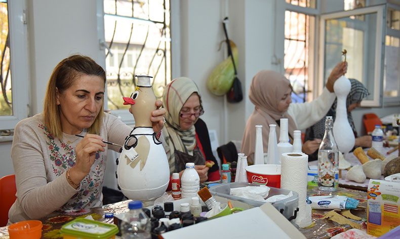 Yıldırım Belediyesi Meslek Edindirme Kursları (YIL-MEK), Yıldırım Kaymakamlığı ve Yıldırım Halk Eğitim Merkezi iş birliğinde düzenlenen ‘Geri Dönüşüm El Sanatları Kursu’ kadınların el becerilerini geliştirirken, ürettikleri ürünleri ekonomik gelire dönüştürme olanağı sunuyor. Güllük Mahallesi Hanımlar Lokali’nde haftanın 5 günü verilen kurslarda, kursiyerler evlerinde kullanmadıkları atıkları getirerek birbirinden farklı renkli ürünler ortaya koyuyor.