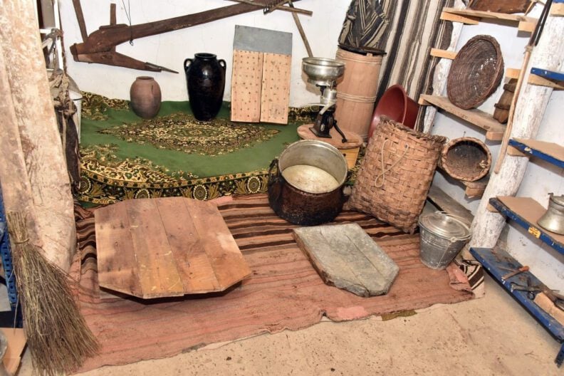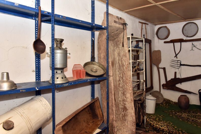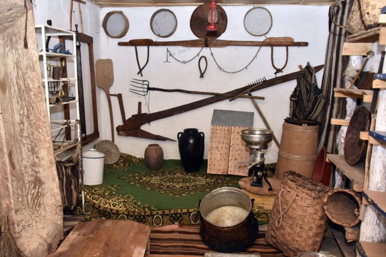En eski eserin yaklaşık 100 yıllık odun hızarı olduğu müzede hamur teknesi, elekler, kalburlar, sepetler, cecim adı verilen kilimler, lüks ve gaz lambaları gibi 100’e yakın artık kullanılmayan eski malzeme bulunuyor.