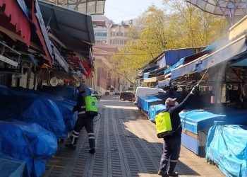 Bursa'da 2 günlük sokağa çıkma yasağının olmasıyla birlikte Bursa Büyükşehir Belediyesi şehir merkezindeki belirli noktalarda haşereye karşı ilaçlama çalışmaları yaptı.