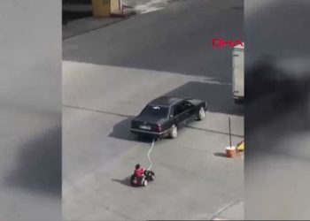 İstanbul Esenyurt’ta 4 yaşındaki oğlunu akülü aracına bindirdikten sonra otomobiliyle çeken baba yakalandı.