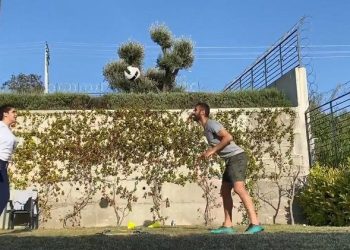 Bursaspor’un kaptanı Selçuk Şahin, evinin bahçesinde eşiyle birlikte yaptığı idmanı sosyal medya hesabından paylaştı.