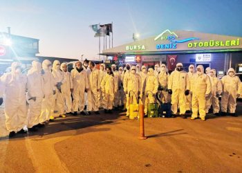 Bursa Büyükşehir Belediyesi dezenfektan ekipleri, Mudanya ilçesinde ilaçlama yaptı.
