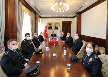 Türk Polis Teşkilatı'nın 175. yıl kuruluş yıl dönümünde İl Emniyet Müdürü Tacettin Aslan ve beraberindeki heyet Vali Canbolat'a ziyarette bulundu.