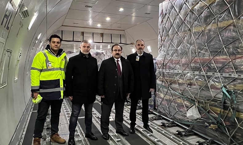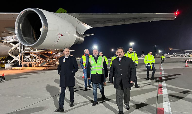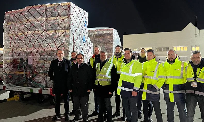 Türkiye’de Kahramanmaraş merkezli yaşanan iki büyük depremin ardından bir destek de Almanya’daki Türklerden geldi. Almanya’nın Frankfurt kentinden THY’nin kargo uçağıyla içinde 2 bin 500 jeneratör, yüzlerce battaniye ve çok sayıda acil ihtiyaç maddesinin bulunduğu 70 tonu aşkın insani yardım malzemesi Türkiye’ye gönderildi. Frankfurt havaalanından deprem malzemelerinin kargo uçağına yüklenme operasyonu esnasında Türkiye’nin Frankfurt Başkonsolosu Erden Tunçer de Turkish Kargo Orta Avrupa Bölgesel Direktörü Ahmet Yıldırım ve Türk Hava Yolları Frankfurt Müdürü Serkan Binyar’dan bilgi aldı.