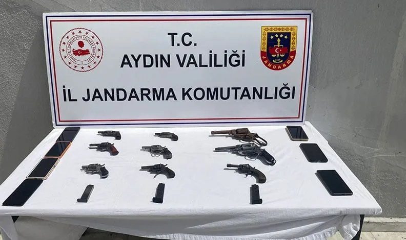 Aydın’da jandarma ekipleri vatandaşların huzur ve güvenliği için çalışmalarını aralıksız sürdürüyor. Edinilen bilgiye göre, Aydın İl Jandarma Komutanlığı KOM Şube Müdürlüğü ve Efeler İlçe Jandarma Komutanlığınca silah ticaretine yönelik icra edilen koordineli çalışmalar kapsamında; Efeler ilçesinde silah ticareti yapacakları tespit edilen O.K. isimli erkek ile S.Ü. ve A.K. isimli kadın şüpheliler yakalandı. Şüphelilerin yapılan üst aramasında 6 adet tabanca ve 7 adet cep telefonu ele geçirildi. Şüphelilerin 4 farklı adreste bulunan iş yeri ve ikametlerinde yapılan eş zamanlı aramalarda ise 3 adet tabanca, 3 adet şarjör ele geçirildi.