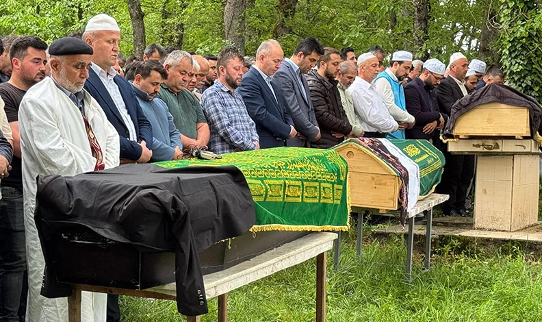 Mahalle camiindeki öğle namazının müteakiben kılınan cenaze namazının ardından karı, koca ve oğlu köy mezarlığındaki aile kabristanına defnedildi.