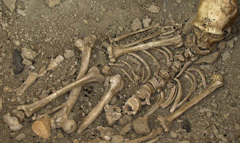 İhbar üzerine bölgeye sevk edilen jandarma ekipleri, başlattıkları kazı çalışmasında kafatası dahil birçok kemik parçası çıkardı.