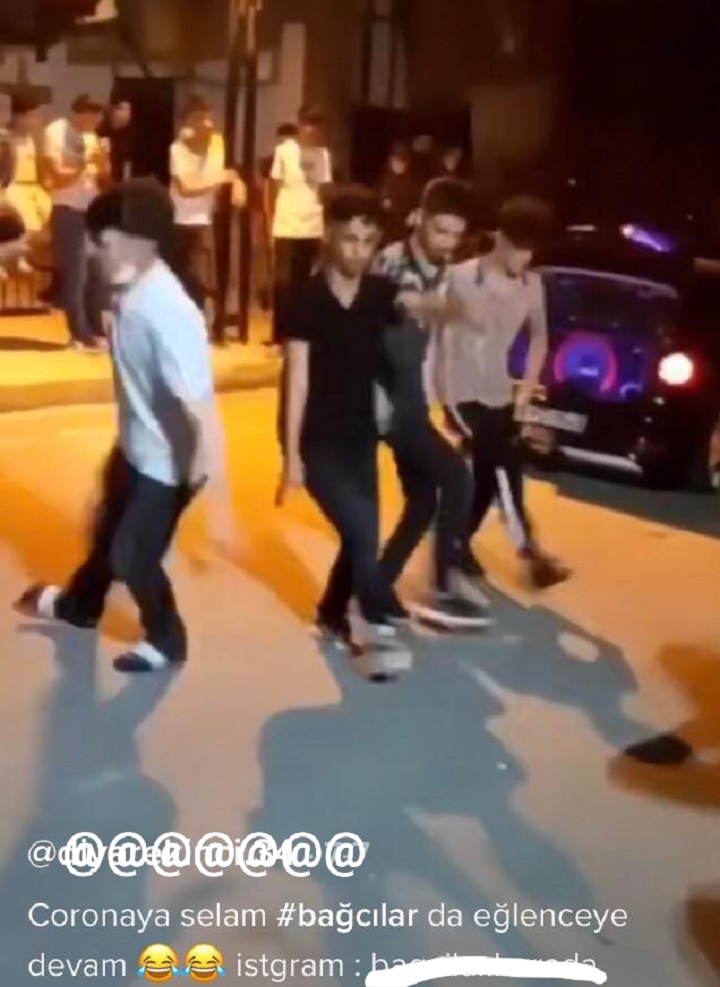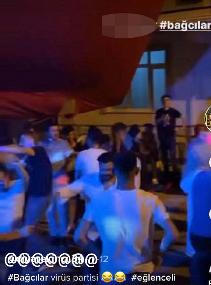 Mahalle aralarında bir araya gelen gençler, çalan müzik ve ışık gösterileri eşliğinde eğlendi. 20 -30 kişilik grupların bir araya geldiği partileri gençler sosyal medya hesaplarından “virüs partisi”, “korona partisi” ve “koronaya selam partiye devam” gibi notlarla yayınladı.