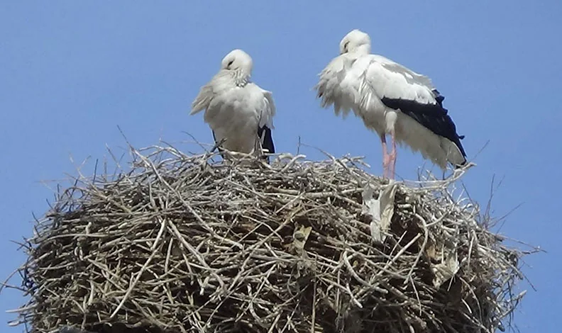 Havanın ısınmasıyla göç yolunda olduğu için birçok kuş türünü bünyesinde barındıran kente leylekler de geldi.