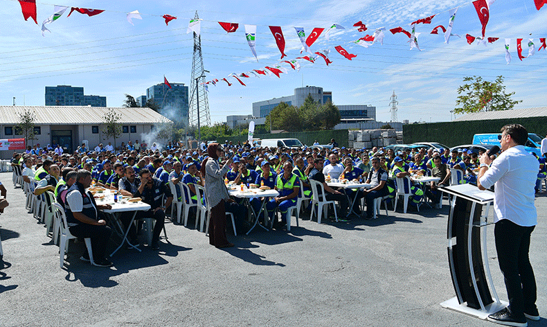 “Emekleriniz ve yaptığınız hizmetler için çok teşekkür ederim. Vatandaşımıza en iyi hizmet edeni, işini en iyi yapanı alnında öperim. İşini en iyi yapan, benim en iyi arkadaşımdır, en iyi kankamdır. Sorumluluğumuz var. İlk önce Allah’a sonra halka karşı sorumluluğumuz var. Bu sorumluluğu yerine getirmek için el birliğiyle mümkün olduğunca iyi çalışmalıyız. Yapacağımız şey budur. Şu anda İstanbul’da büyük şehirle birlikte 40 belediye bulunuyor ve bu 40 belediye içinde en fazla zam veren ilk üç belediyeden birisiyiz. Personelimize yüzde 80 zam verdik. Helali hoş olsun. Güle güle harcayın. Amacımız çalışma saatlerinde arkadaşlarımızın mutlu, huzurlu bir şekilde işlerini yapmaları ve mesaileri bittiğinde yine huzurlu, mutlu bir şekilde evlerine gitmeleridir. Benim başarımın arkasında siz varsınız. İyi ki varsınız”