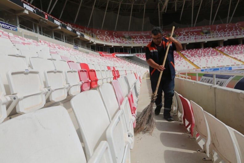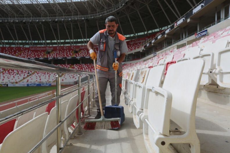 Bu kapsamda Bahçeşehir Koleji Sivas 4 Eylül Stadyumunun çevresinde ve içinde temizlik çalışmaları gerçekleştirilirken Belediye Başkan Yardımcısı Levent Olgun da çalışmaları takip etti. Konferans Ligi’nde mücadele eden Sivasspor’a başarılar dileyen Başkan Yardımcısı Olgun, “Belediye Başkanımız Hilmi Bilgin’in talimatlarıyla hem stadyum çevresinde hem de içerisinde taraftarlarımızın daha sağlıklı, hijyenik ortamda maçlarını izleyebilmeleri için çalışmalar yapıyoruz” dedi.